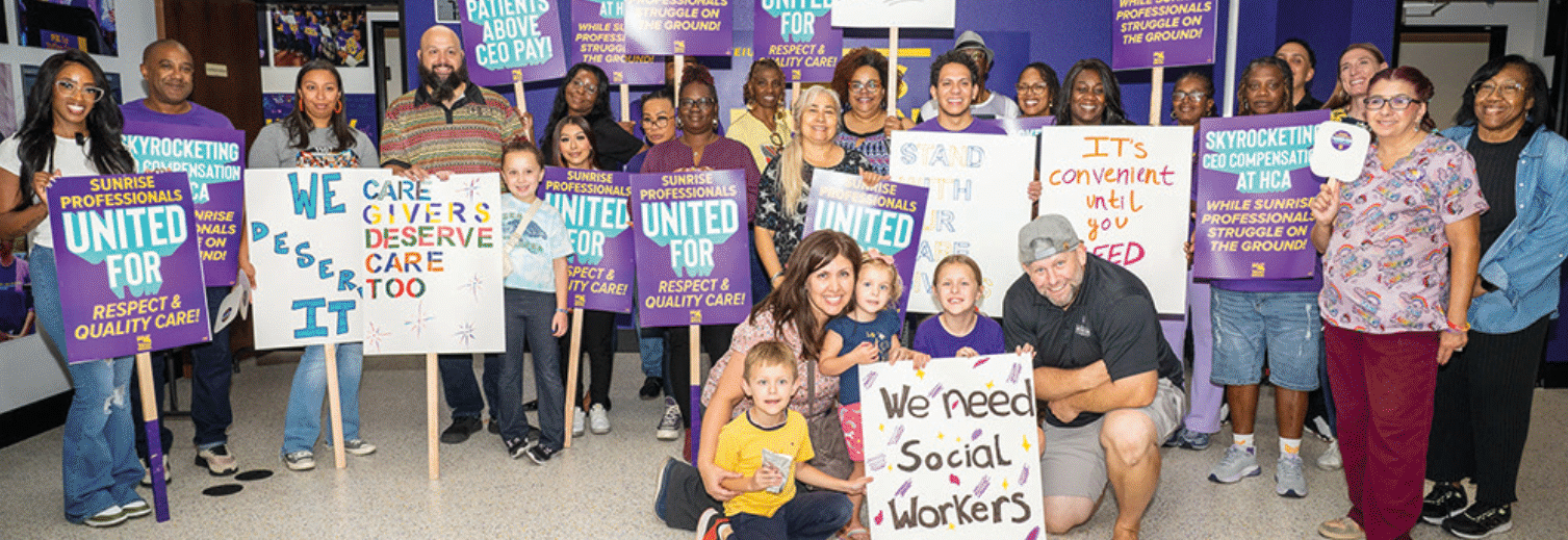 Professionals at Sunrise Hospital in Las Vegas just voted by 98% to ratify their first-ever union contract with major raises and other critical improvements.