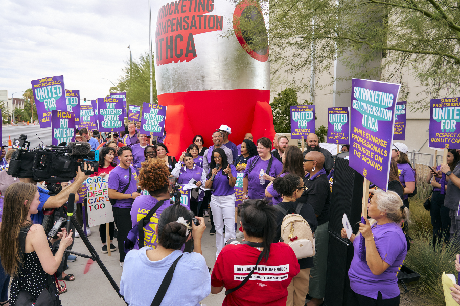 Professionals at Sunrise Hospital in Las Vegas just voted by 98% to ratify their first-ever union contract with major raises and other critical improvements.