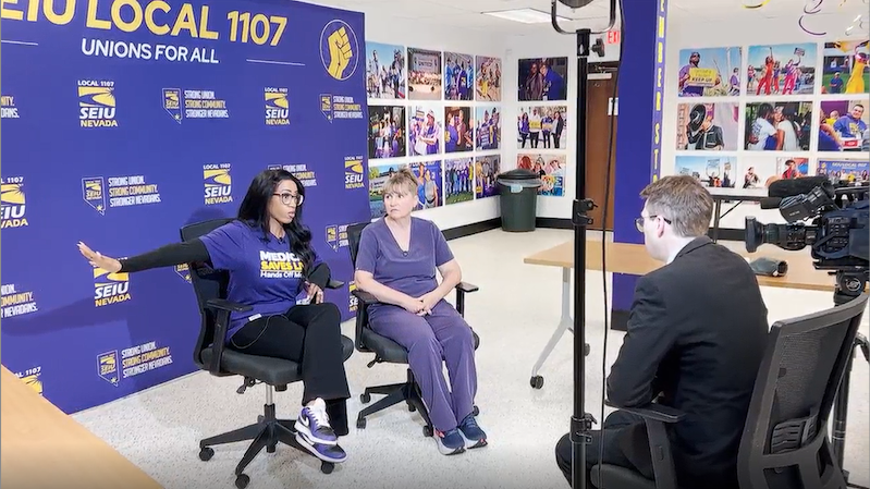 UMC nurse and SEIU 1107 Executive Board Member Liz Bolhouse, alongside President Michelle Maese, spoke out in the news and got widespread media coverage about the importance of protecting frontline workers.